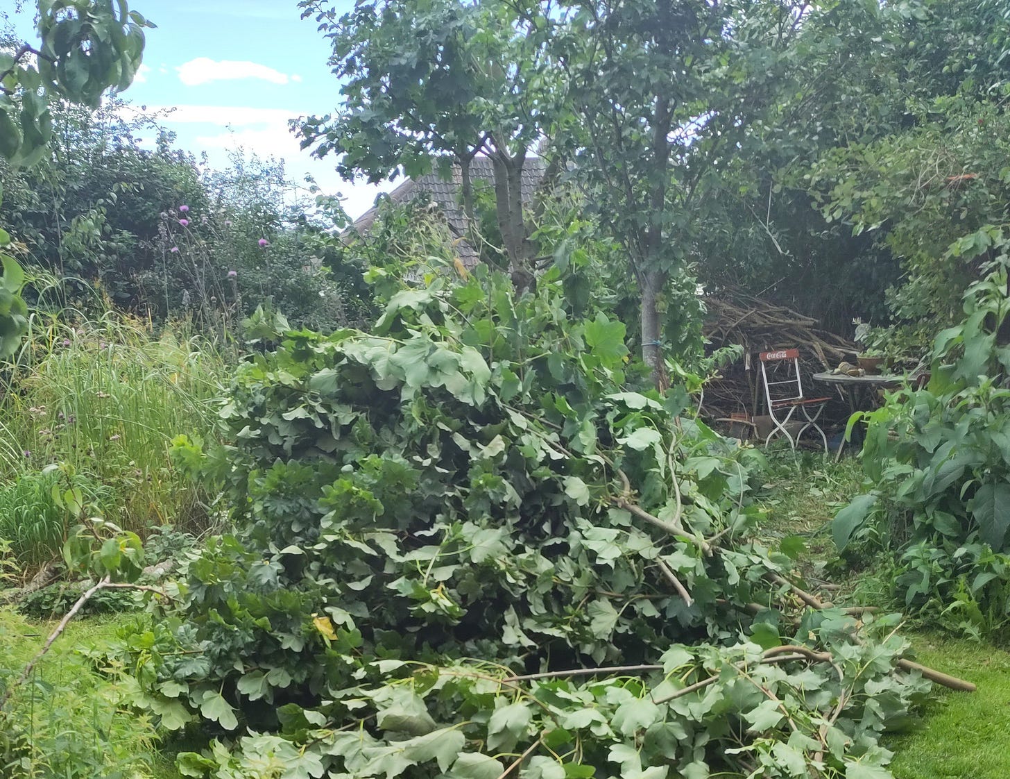 He has carried the piles of branches and laid them back under the tree in a synthetic leaf drop